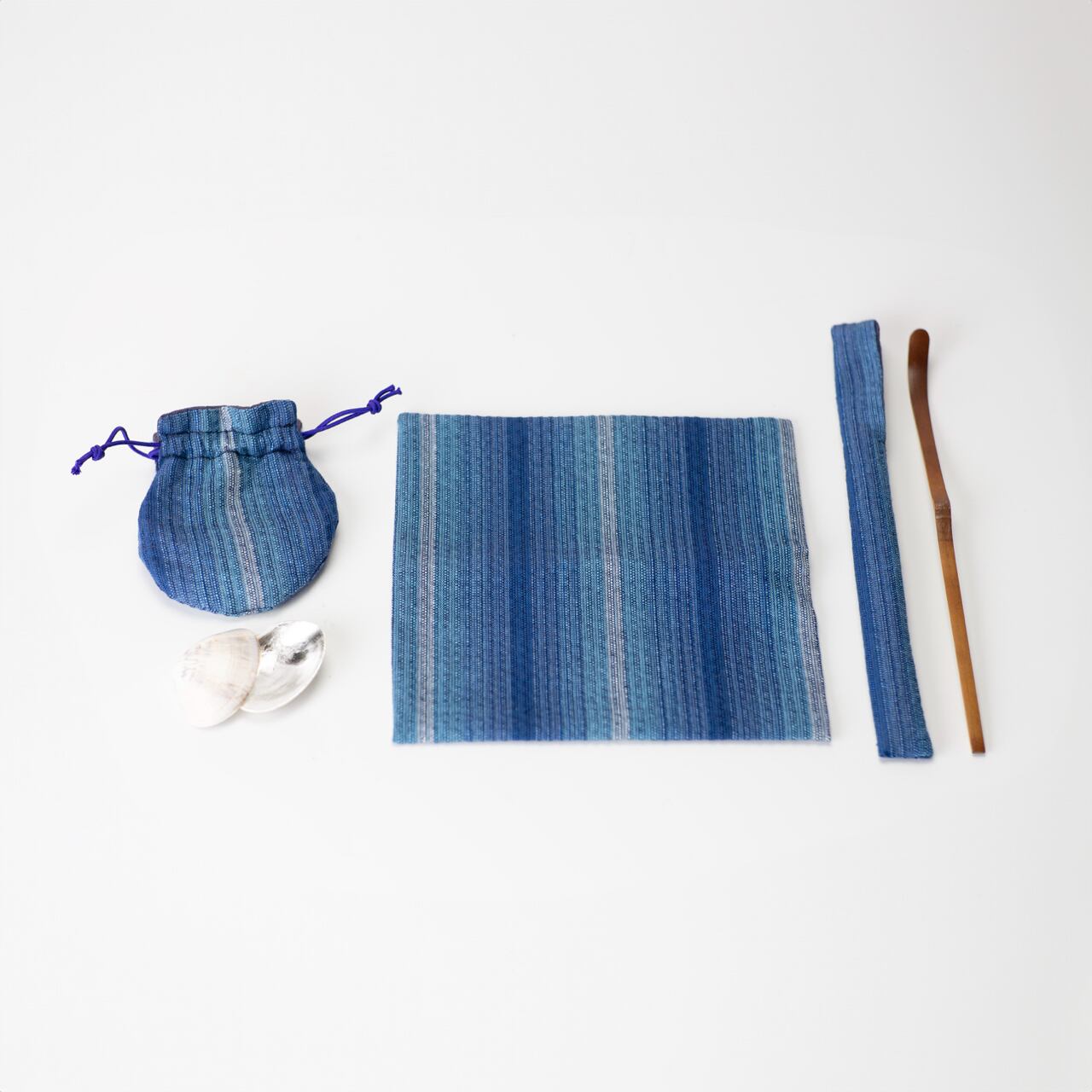 茶杓、貝香合、古袱紗、三つ組仕覆